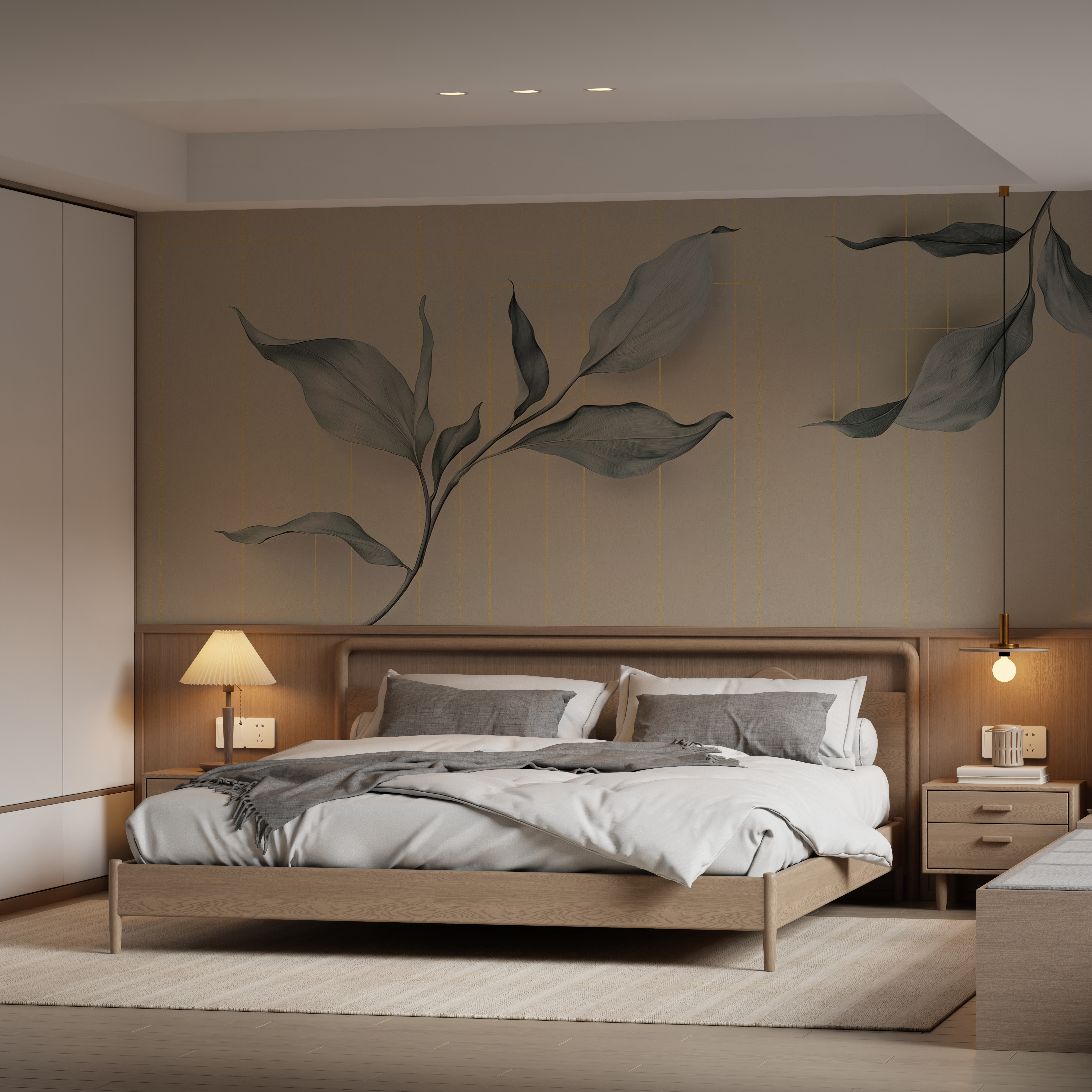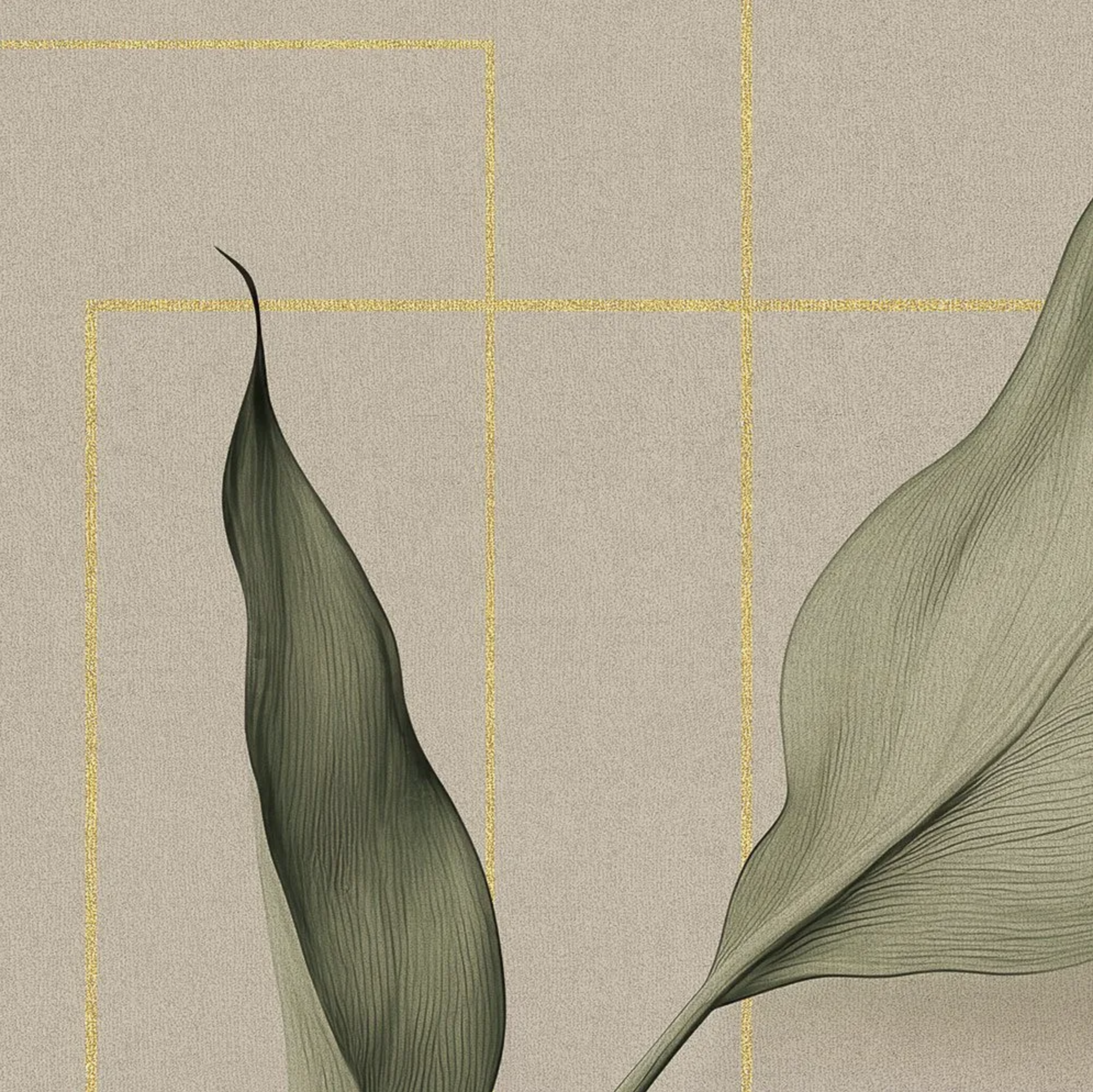 Gold-laminated wallpaper with a non-woven backing and a vinyl surface with a fabric effect. Elegant and durable, ideal for commercial and residential spaces.
