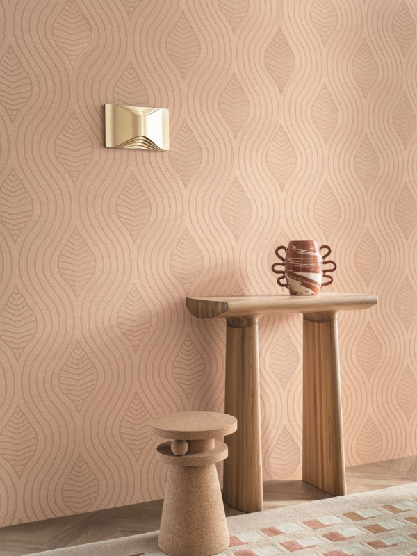 This embroidered fabric is replicated on an extra-wide vinyl wallcovering. Refined and timeless, Brodelia is available in 6 soft, tonal backgrounds. Contemporary shades of praline and nude have been included in the selection.