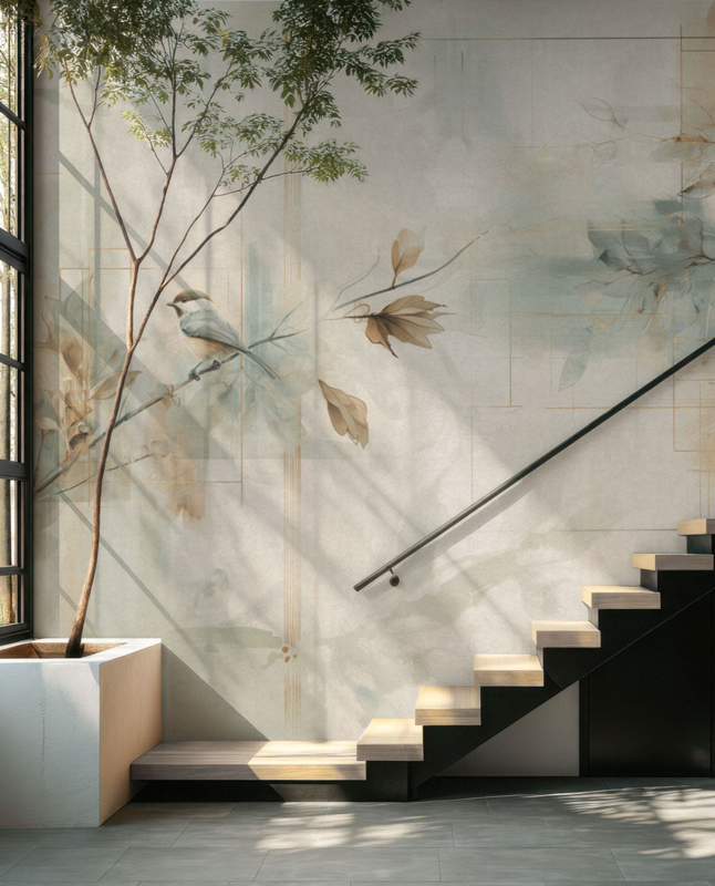 Zeer fraai op maat gemaakt wandvullend behang ALLEGRA van Rimura.