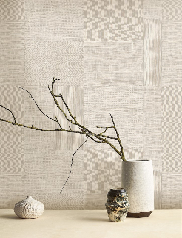 Prachtig neutraal behang met warme uitstraling TRACES van Kroma - Masureel. Collectie Traces. Verkrijgbaar in 3 kleuren.