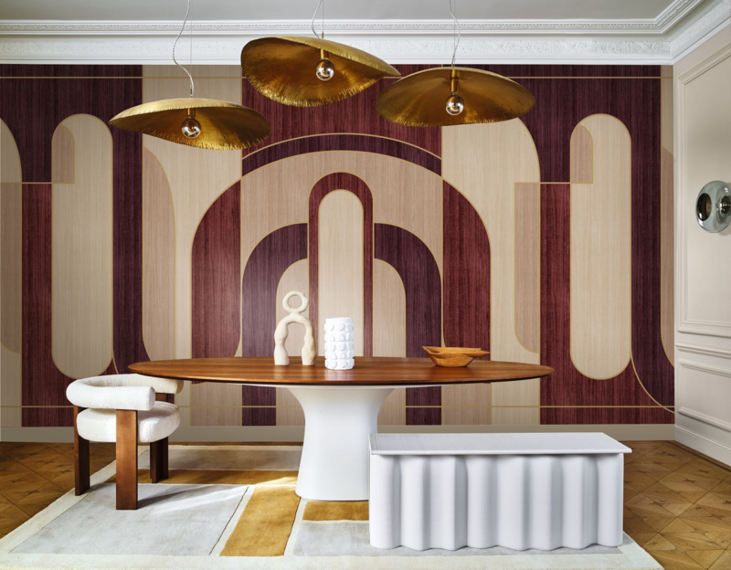 ALCOVES suggereert een rustige en verfijnde plek waar architectuur centraal staat. Dit ontwerp kenmerkt zich door een reeks elegante bogen, geïnspireerd op klassieke nissen, die een zachte structuur toevoegen. Een smalle gouden omlijning accentueert de bogen subtiel en verspreidt een gedempt licht, terwijl het walnootfineer een warme en luxueuze sfeer creëert, een ingetogen verwijzing naar de intieme interieurs van Saint-Germain-des-Près.