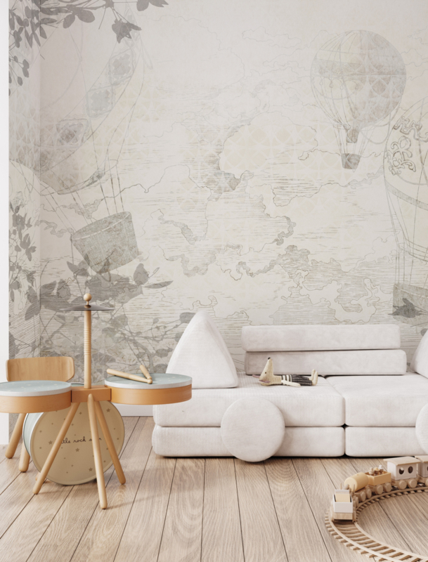 Geheel op maat geprint op zeer hoogwaardig behang met klein fraai relief in linnenstructuur op genummerde banen van links naar rechts.