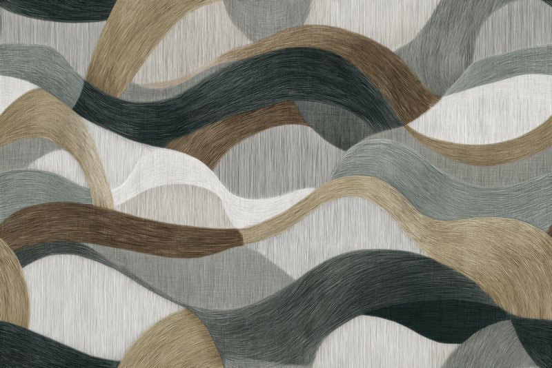 Luxe wandvullende behang mural op maat EUONIA WAVES van Wall and Deco Italie. Collectie 2026. Verkrijgbaar in 2 kleuren.
