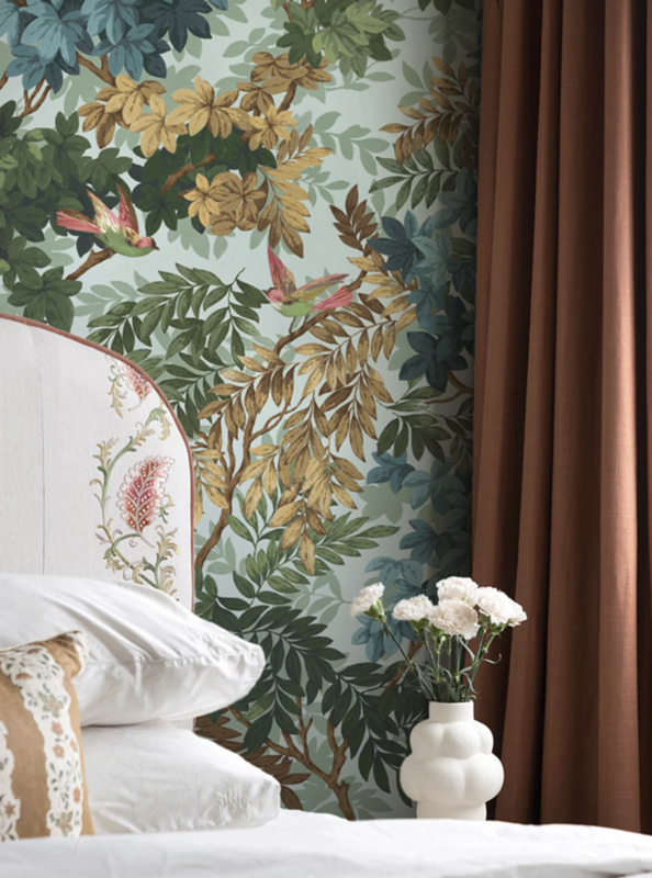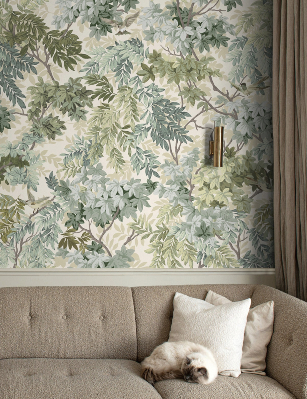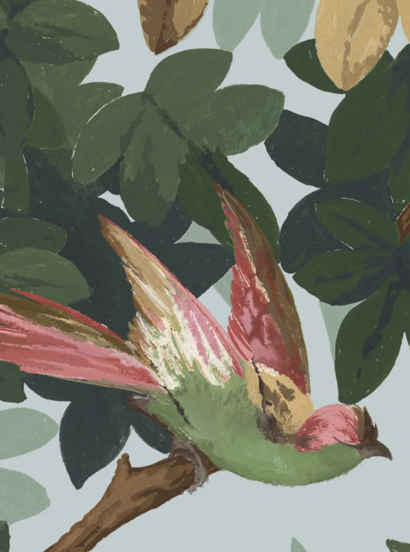 Zeer fraai behang LES OISEAUX naturel van Isidore Leroy. Verkrijgbaar in 3 prachtige kleuren; original, foret en aube.