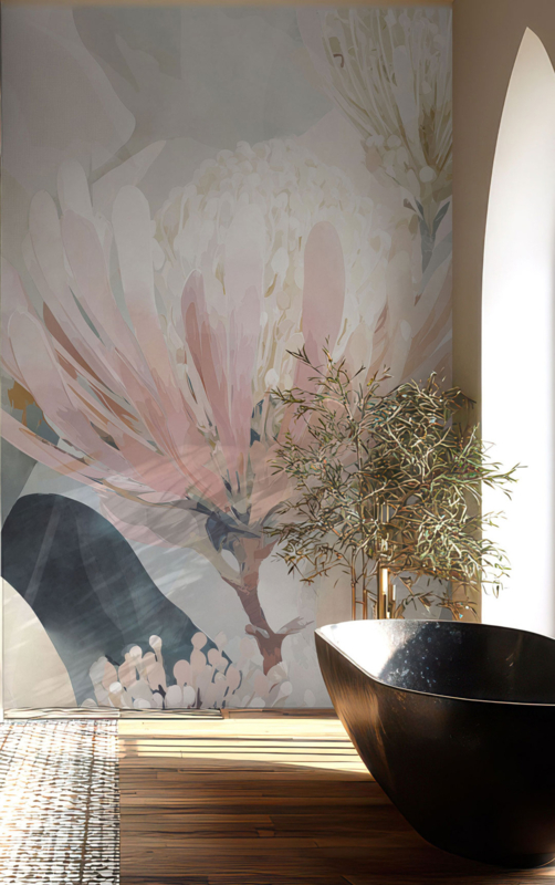 Zeer fraai op maat gemaakt wandvullend behang CAMELIA van Rimura.