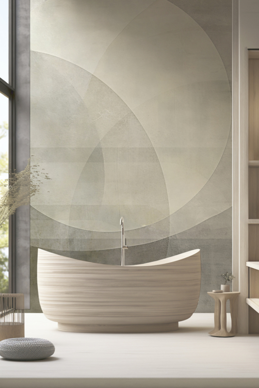 Zeer fraai op maat gemaakt wandvullend behang SPHERAL van Rimura.