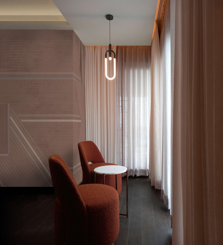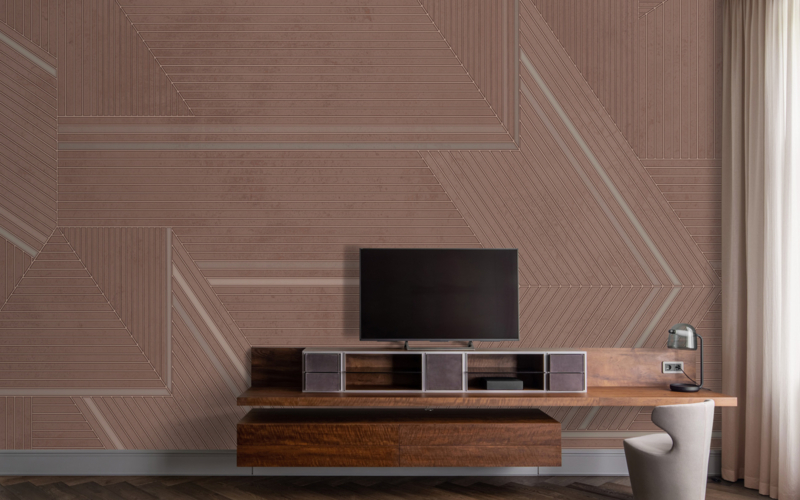 “The Frame” van daisy james is een minimalistische wallcover met zeer fijne streepstructuren en subtiele kleuraccenten. Het ontwerp heeft een gelaagd oppervlak en een gecontroleerd visueel ritme, waardoor het rustig en verfijnd oogt. De bruinachtige terra-kleurstelling voegt warmte toe zonder het ingetogen karakter te verstoren en maakt de wallcover geschikt als stille achtergrond in eigentijdse interieurs.