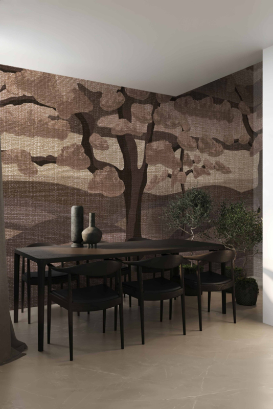 “The Ilex Brown” van daisy james is een wandbekleding met een abstract, landschappelijk geïnspireerd ontwerp met een subtiele geweven look. De zichtbare textuur geeft het oppervlak een textielachtig karakter, vergelijkbaar met een wandtapijt. De warme bruine tinten en zachte overgangen creëren diepte en een gelaagd effect, waardoor het ontwerp moeiteloos past in hedendaagse interieurs.