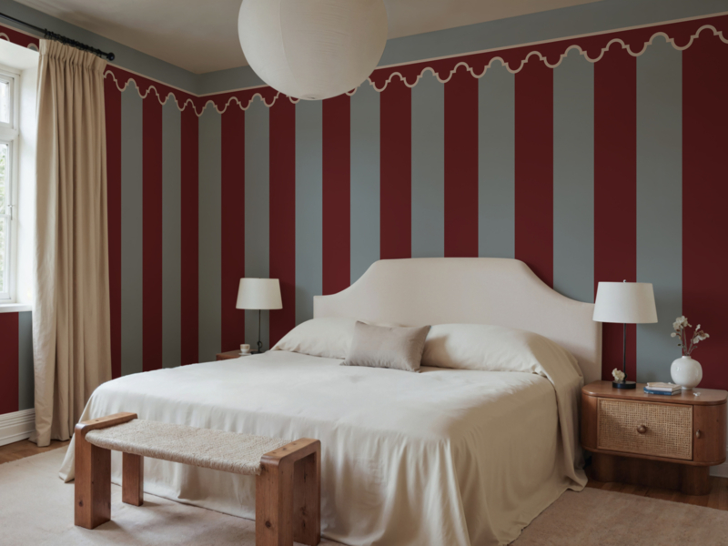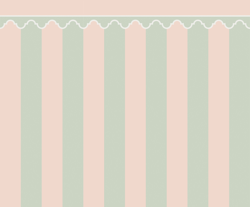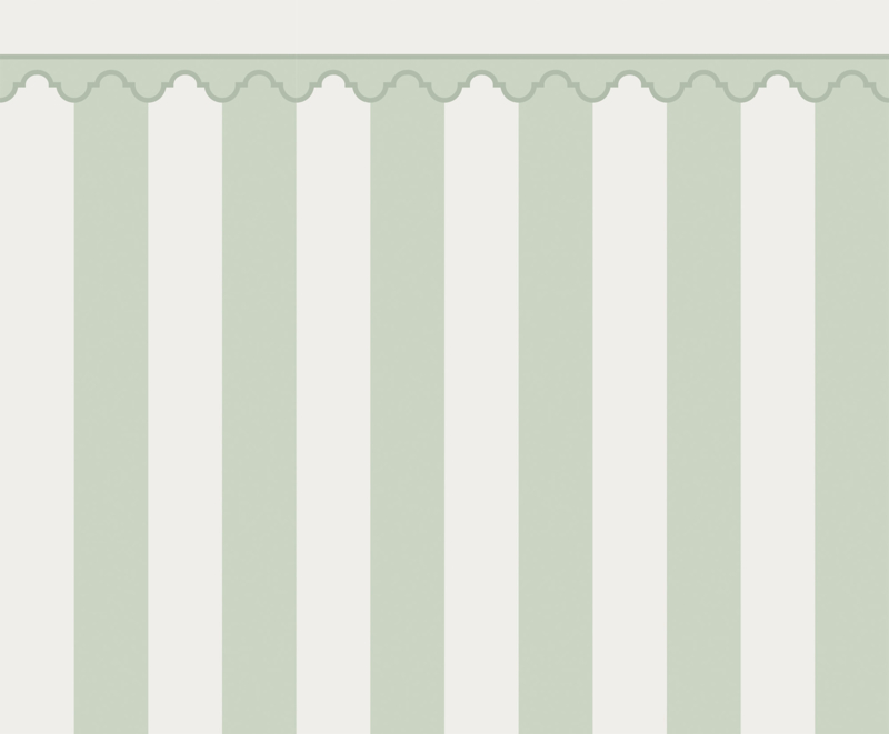 Ontdek een klassiek gestreept ontwerp in rustgevend groen, aangevuld met een chateau-geïnspireerde geschulpte rand. Perfect voor het toevoegen van elegantie en verfijning aan elke kamer. Claim Your Space met dit smaakvolle patroon.