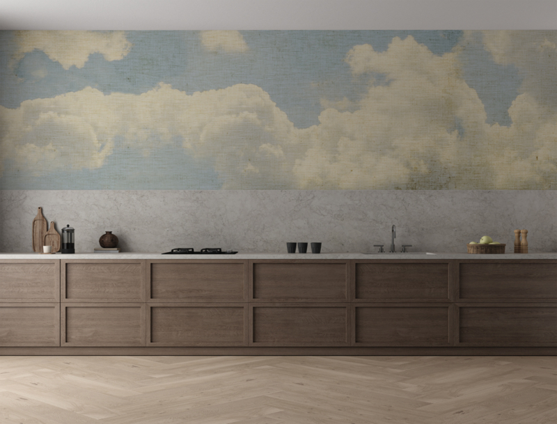 Heerlijk wegdromen met deze vintage look behangwand BLUE SKY.