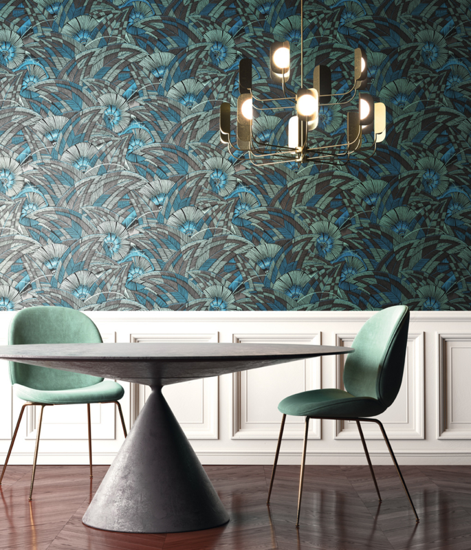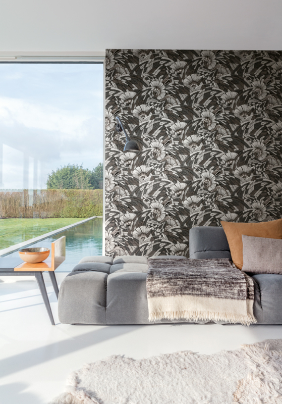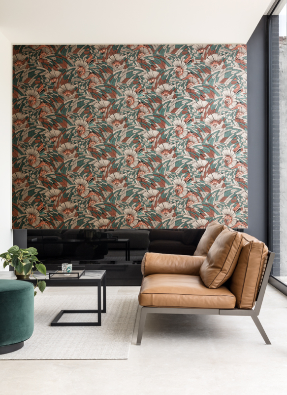 Geweldig grafisch designbehang BALI van Khroma voor Masureel! Voor direct sfeer in je interieur.