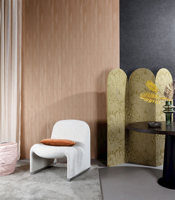 Zeer fraai behang met voelbaar relief ARI Almond van Khroma. Collectie Mysa.