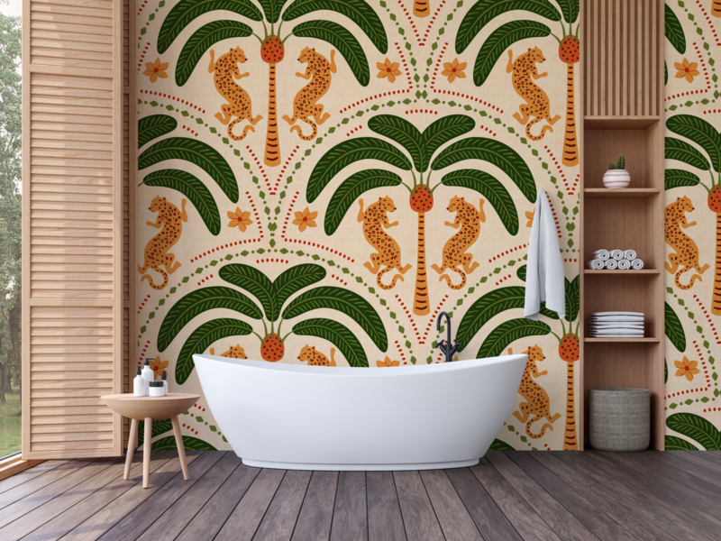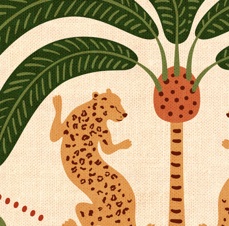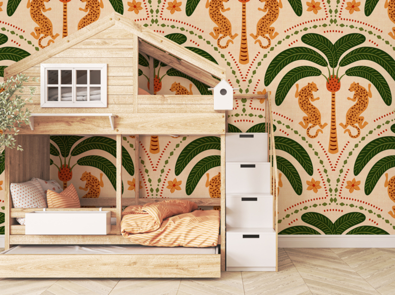 Panters it is! Geweldig op maat gemaakte behang UNDER THE PALM TREE van Rebels & Heroes. Prachtig in de jongens- of meisjeskamer of in de babykamer.