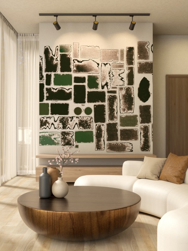 SORICO by PuckbDurf te decoreren! Maak een statement in je interieur of badkamer met deze exclusieve behangmural SORICO in bruintinten met subtiele groenaccenten van PuckB voor Behangfabriek.