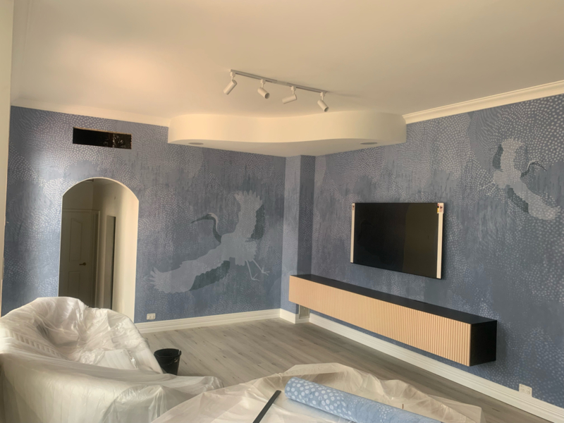 Sehr einfach aufzutragen (Wand verschmieren); die Bahnen sind von links nach rechts nummeriert.
