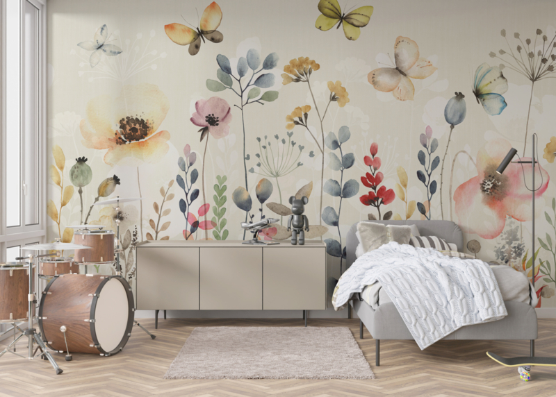 Wunderschöne individuelle Tapete für das Kinderzimmer für Ihre Liebsten! Design SUMMER BUTTERFLIES von Rebels & Heroes.