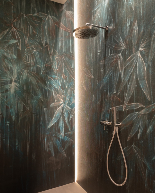 AQUABOUT WET SYSTEM ™is the patented waterproof wallcovering dedicated to bathrooms, showers, kitchens, swimming pool areas, spas and any wet environment. The water-based resins used in the system ensure a low environmental impact and an agile installation process.