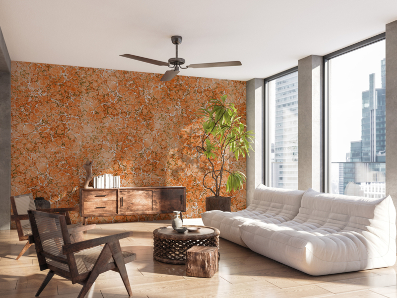 Dare to decorate! Lovely contemporary bespoke wallpaper mural LIQUID MARBLE orange by Behangfabriek.
