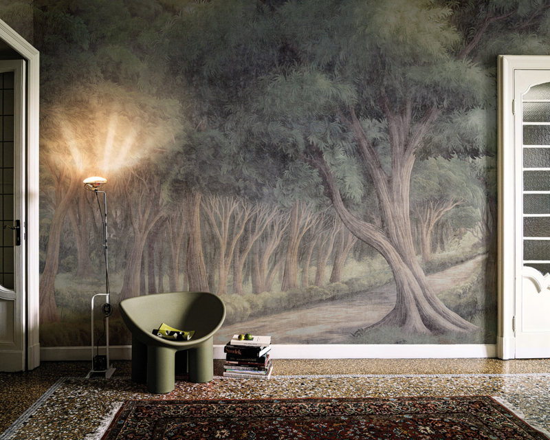 Beautiful exclusive wallpaper panoramic LE PARC ELEGANT BNV18 designed by Nicola Bottegal for Londonart Italy. Collection Tale Books: Bon Voyage Cap.2. Available in 4 colors.