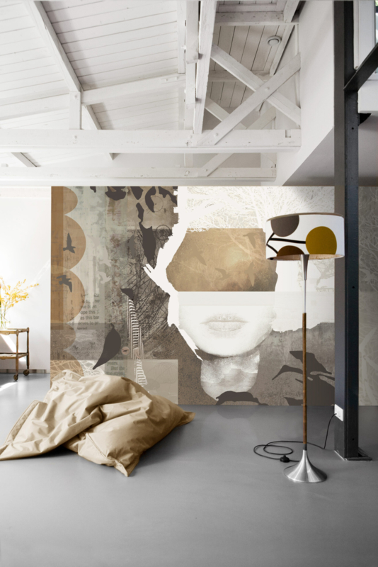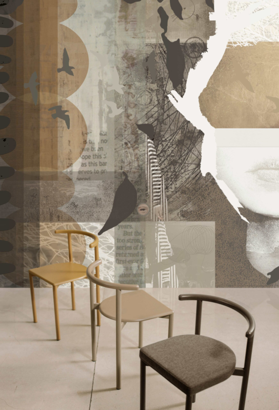 Add a refined, natural touch to your interior with “The Eve”, an abstract natural wallcovering by daisy james. This seamless design subtly reveals a face within abstract shapes, warm ochre tones, soft circles, and stylized leaves. Abstract birds elegantly weave through the pattern, bringing a playful and organic feel to your space. Inspired by the beauty of nature and shaped by contemporary design, this abstract natural wallcovering creates a seamless, artistic composition. Ideal for private homes, boutique hotels, modern offices, and creative studios.  The design flows effortlessly across your wall, transforming any room into a sophisticated, atmospheric statement.