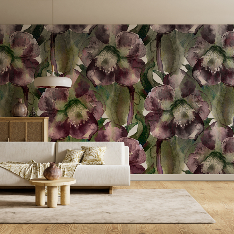 Dare to decorate! Lovely contemporary abstract bespoke wallpaper mural PURPLE FLOWERS by Behangfabriek.