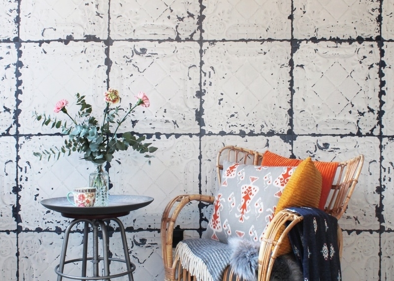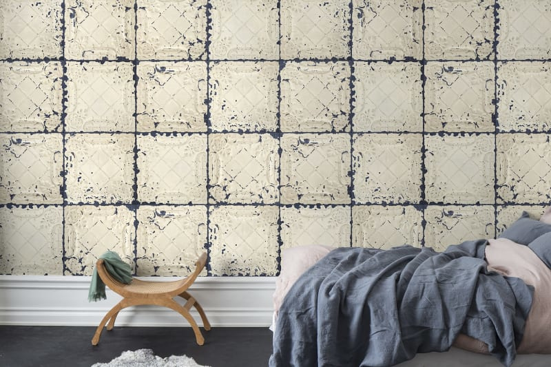 Old tin plates available in two shades. Great industrial look wallpaper by Rebel Walls.