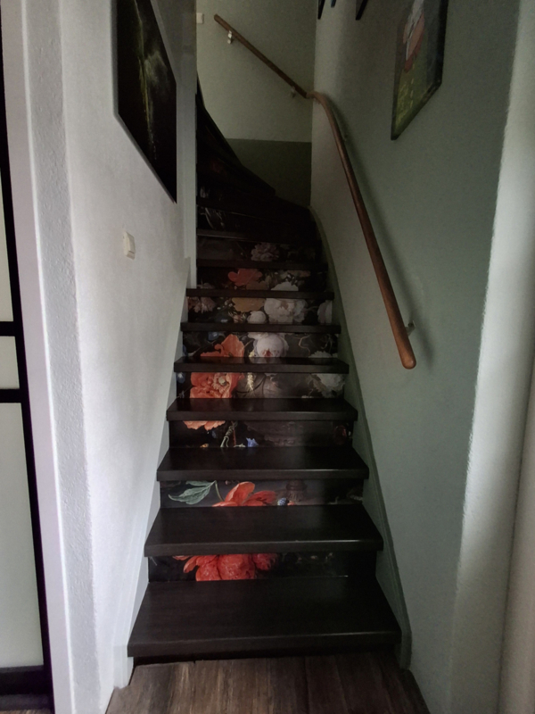 Upgrade your stairs in no time! Use our glue less stickers MASTERPIECE after a Old Master Still life painting.