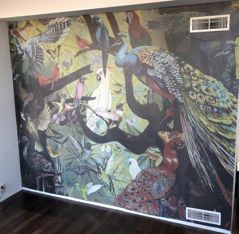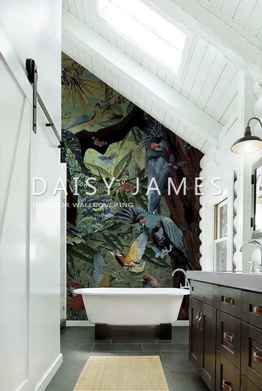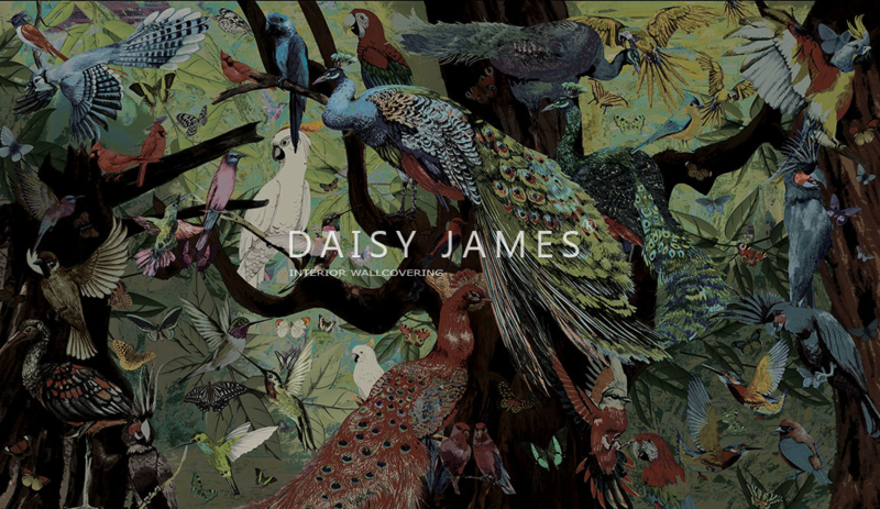 Beautiful eyecatcher! Luxe wallcovering mural THE FOUNDING FEATHERS by Daisy James in lovely colors.
