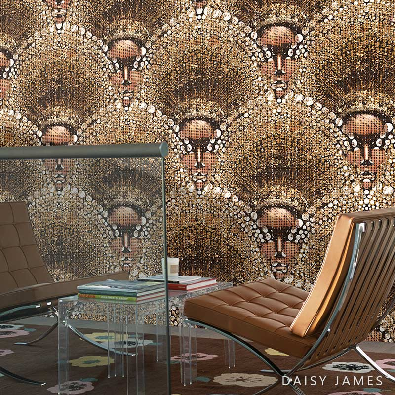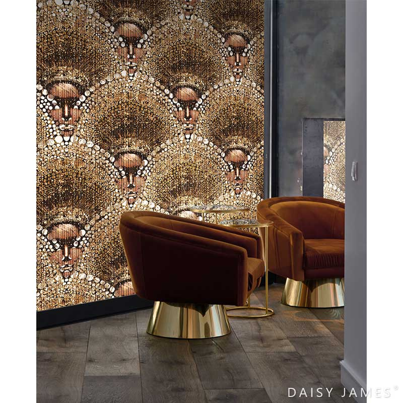 Beautiful eyecatcher! Luxe wallcovering mural THE AZTEC by Daisy James in stunning colors.