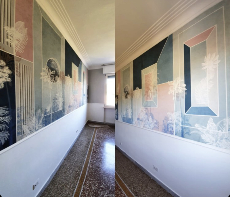 Vinyl wallpaper is made up by two layers: the front layer in vinyl, which is printable, and the back layer in TNT (non-woven fabric), which confers high dimensional stability during the installation and the drying procedure. Also worth noting is the ease of installation and of the possible removal from the surface.
