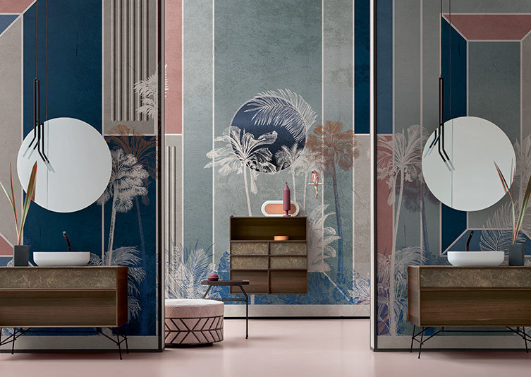 Decorated glass fibre glass for floorings, bathrooms and kitchens. The revolutionary covering with protective and decorative function originates from the cooperation between Inkiostro Bianco and Mapei.