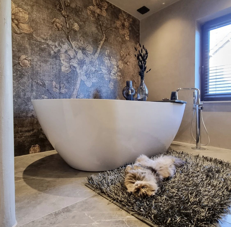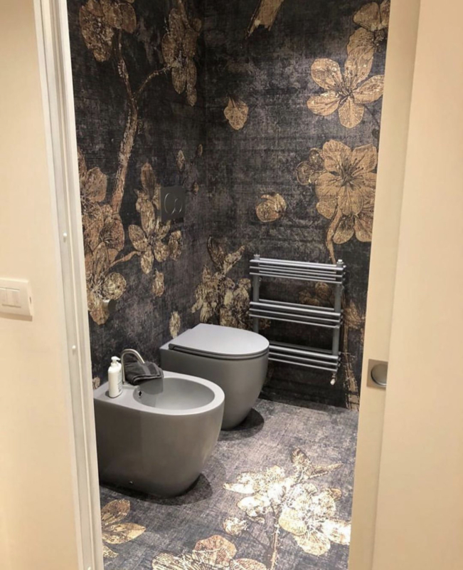 Decorated glass fibre glass for floorings, bathrooms and kitchens. The revolutionary covering with protective and decorative function originates from the cooperation between Inkiostro Bianco and Mapei.
