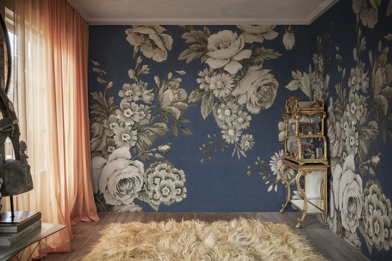 Beautiful botanical wallpaper mural with large flowers AFRAIM by Rebelwalls. Available in 5 lovely colors.