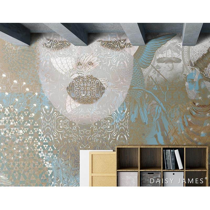 Beautiful eyecatcher! Luxe wallcovering mural THE MERMAID by Daisy James in lovely colors.