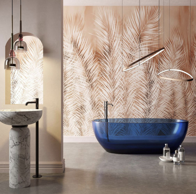 Decorated glass fibre glass for floorings, bathrooms and kitchens. The revolutionary covering with protective and decorative function originates from the cooperation between Inkiostro Bianco and Mapei.