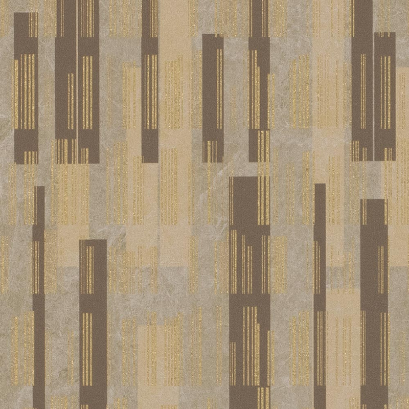 Gold-laminated wallpaper with a non-woven backing and a vinyl surface with a fabric effect. Elegant and durable, ideal for commercial and residential spaces.