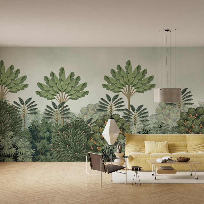 PALM LANDSCAPEDare to decorate! Lovely contemporary bespoke wallpaper palm landscape mural PALM LANDSCAPE by Behangfabriek.